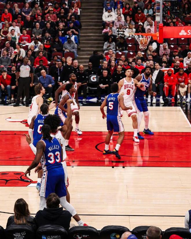 北京时间11月5日,NBA常规赛76人客场对阵公牛,东部前两名展开榜首大战,麦凯恩复出迎来赛季首秀。恩比德与马克西给力表现,率领76人在次节中段取得24分领先优势。公牛顽强反扑最后时刻武切维奇三分准绝杀,格莱姆斯反绝杀三分不中,最终公牛113-111完成24分逆转战胜76人,公牛6胜1负升东部第一,76人丢掉东部榜首。